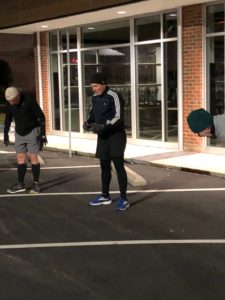 For something a little different, we gathered in the church parking lot for a quick warmup before learning the rules of the game: