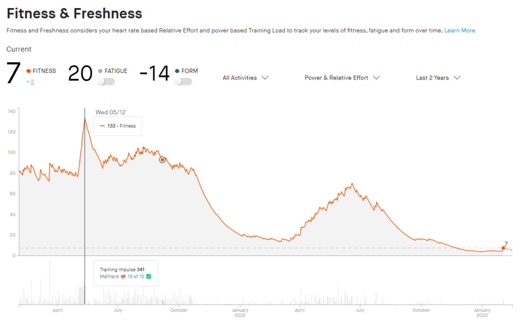 My Strava was amazing. I was in “Peak Fitness”! 133! …Then due to me overusing my body, and lack of stretching and self-care, my hip flexors gave way and I was sidelined all last winter (and turned 40!). It sucked. It was the first time I sat out of F3 for an extended period…ever.