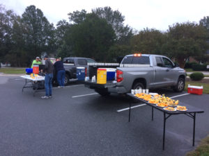 I made several trips shuttling some of the PAX that had to leave early due to other commitments back to St. Mary Magdalene. The first break at Apex UMC was epic. Hermes, Hello Kitty, Pet Sounds, Flacco, Pickles and Sooey’s Dad sprung into action setting up a buffet of treats, which were anxiously awaiting the arrival of our PAX of HIMs or maybe HIDAs. The final stop was mind-blowing. As the SaG Team started to arrive at St. Mary Magdalene, without saying anything, they got to work setting up the arrival buffet for the hungry, tired, and aching PAX. The biggest hit of the buffet was the Appleton farm Spicy Italian Dry Salami and the brewskies that were donated by Hello Kitty and Beaker.