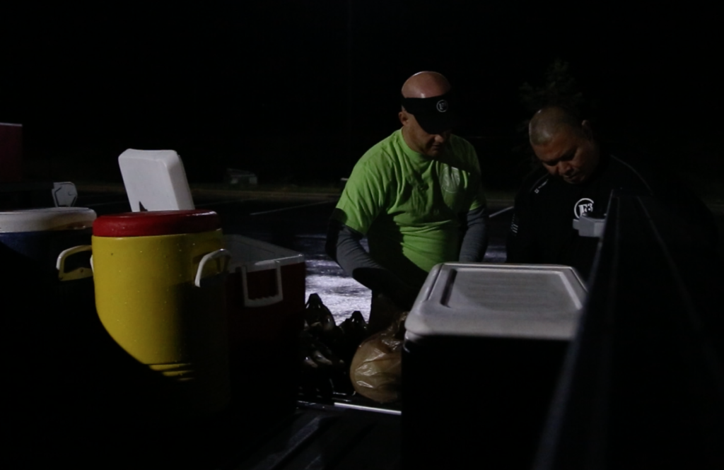 9 HIMs: Flacco, Hermes, Hello Kitty, Pet Sounds, Pickles, Smokey, myself, Dave (Crimson and Sooey’s friend), and Warren (Sooey’s Dad) (Editor’s note: Frisco unsuccessfully tried to get everyone to call Warren “Hollaback Boy” since Sooey’s hospital name is ‘Hollar’ and, well, Frisco is Frisco…). They volunteered 5 hours of their personal time on a Saturday to provide support for 60+ Odyssey PAX. The SaG team started our morning at 0500, way before the crack of dawn! Hermes, Pet Sounds and Hello Kitty were there as I arrived. I do not know what time they showed but it was early (true dedication). I think they did not want to over sleep, so they did not sleep.