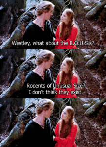 No one has ever survived the fire swamp…known for 3 deadly terrors, Fire bursts, Lightning Sand, and R.O.U.Ses…what is an R.O.U.S? you ask… A Rock Of Unusual Size