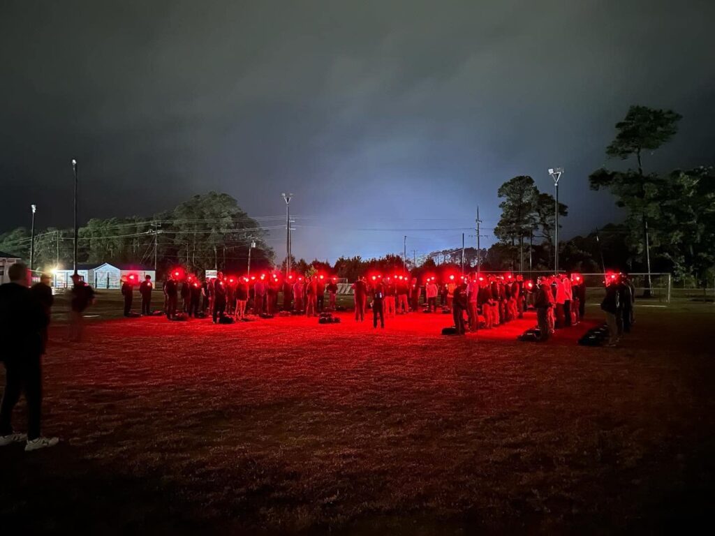 We arrived early to make sure we were parked and ready to go. All 77 of us lined up on one of the end lines on the field, but already made our first mistake and earned some PT to start off the night. Once we finished that, we were introduced to the Cadre and support team. Of course, right about 5PM, it started to rain and didn’t really stop for the rest of the event. Our lead Cadre for GTE-44 was Major Payne. Alongside him was Slaughter, Akron, and Uncle Rico. The Cadre took some time to talk about the nature of the event and how it would work. Major Payne then led us in a reading of the “Man in the Arena”: