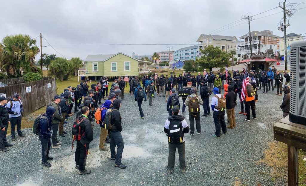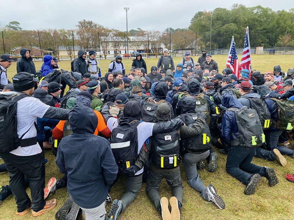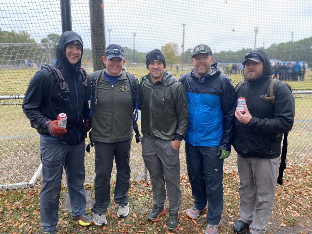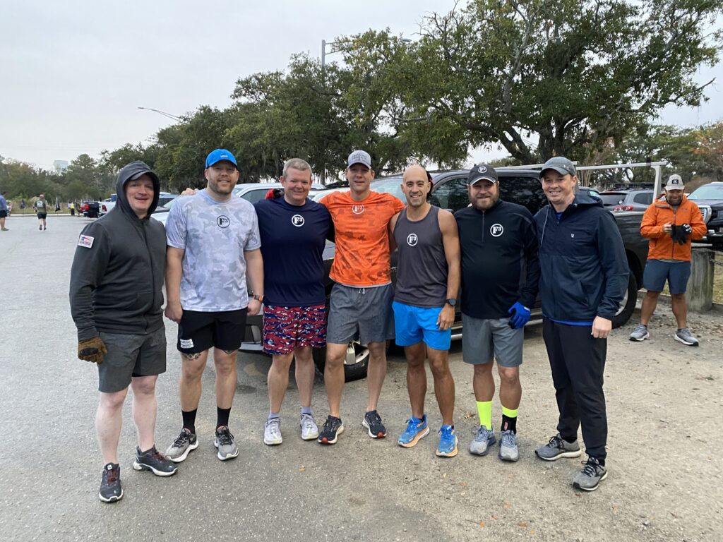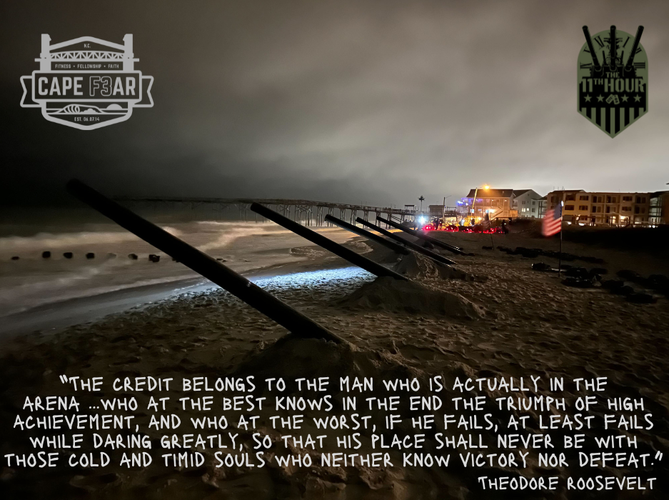 **HeroWOD and Sunriser:**Atomic Wedgie shared some about his brother, US Army Private First Class David H. Sharrett II who served and died in battle January 16, 2008. Our workout was based on numbers associated with his military division and his life, so we did 27 ruck over burpees (his age when he died), 55 squats (his high school football number), 32 merkins (he was part of the 32nd cavalry regiment), and 101 SSHs (he was in the 101st Airborne division). After completing each exercise, we completed a 400m run. At the end, I can only assume the sun was completely up but, as was the case during the event up to this point, it was raining and cloudy and cold. During the WOD, one of the members of our platoon injured his knee and there was no way, knowing we were so close to completion, we were going to let him not finish, so we loaded him up and carried him to our sunriser. I think it would have been awesome to be on the beach to watch the sunrise but, as previously noted, the weather didn’t cooperate, so the Cadre took us over the dunes and out of the wind. Wapner shared about how, shortly after he joined F3, his wife was diagnosed with Stage 4 cancer and his Cape Fear brothers stepped up and in to help support him. It was a powerful message and really reinforced a lot of what we had learned at GrowSchool and over the course of the crucible ruck.