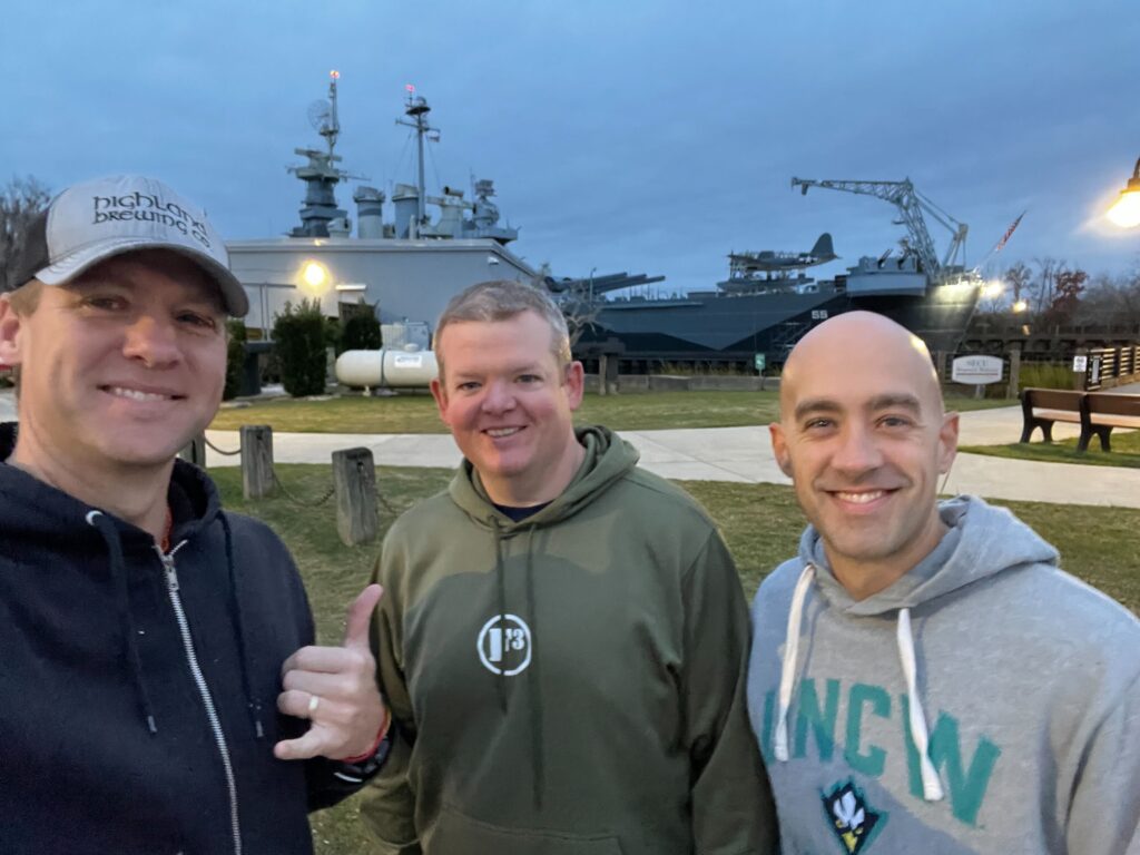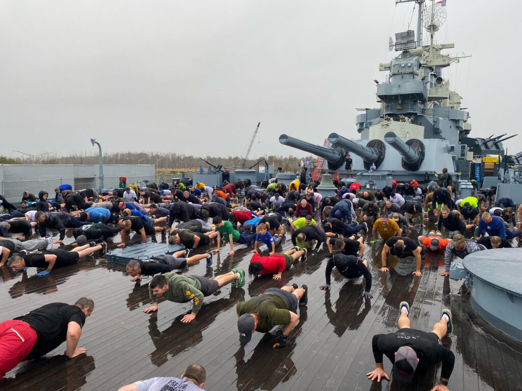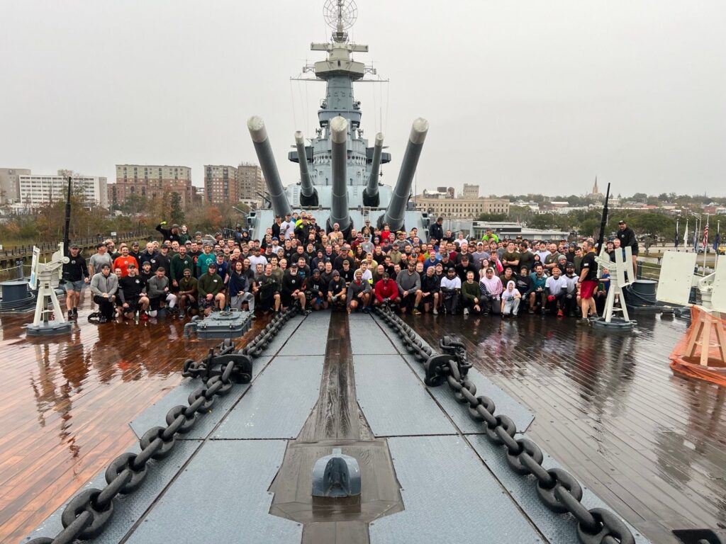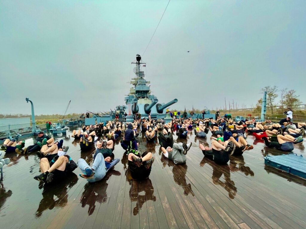 This was one of the things YHC was really looking forward to for the weekend. You don’t get many chances to do an F3 workout on the deck of the USS North Carolina battleship. We were joined by Skipper and Shut-In who joined us for the bootcamp. We started on dry land with a trumpet performance of the star-spangled banner, some cadence exercises, a short jog, and some more exercises before we made our way onto the ship. The trainers leading the workout were Bono, Uno, and Power Clean. NOTE: Keeping SSHs in cadence at a slow cadence is actually pretty difficult. They got some pax that had recently joined F3 and an FNG to lead us in a few of the workouts and used other pax to help teach them how to lead an exercise. One of the coolest moments during the workout, for YHC, was when we were doing smurf jacks on the Battleship. It sounded like a war drum as we prepared for the crucible ruck. We finished up at the back of the ship for a photo, taps on the trumpet, a modified COT, and the naming of some FNGs. There were 218 people on that battleship! We got a preview of the weather to come as it was rainy, windy, and cold. PERFECT.